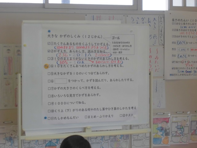 6月6日(金)2年生 算数 その1 公開日 2025/06/06 更新日 2025/06/06 できごと 授業の計画が黒板横のホワイトボードにまとめてあります。子どもたちは、学習計画を見ながら見通しをもって学習することができます。 +4