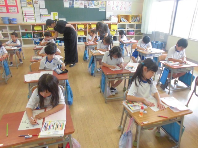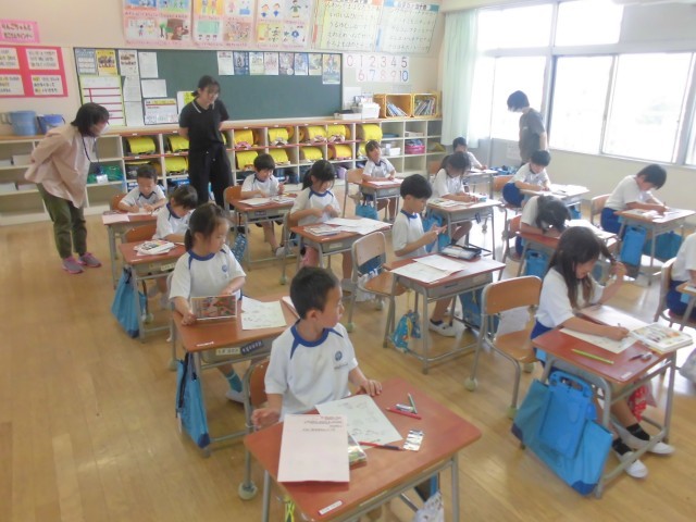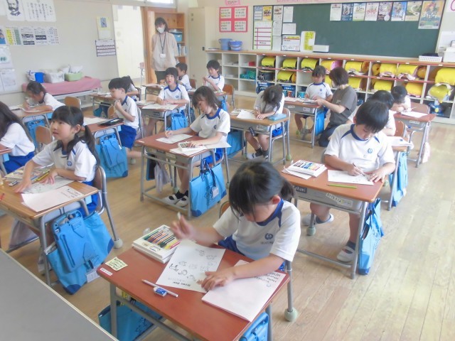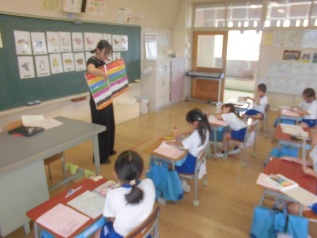 6月6日(金)1年生 外国語活動 公開日 2025/06/06 更新日 2025/06/06 できごと ALTの先生がお休みのため、英語が得意な先生が授業を担当します。動物と色を英語で表現します。「ベアー」を「ブラウン」で塗りましょう! +2