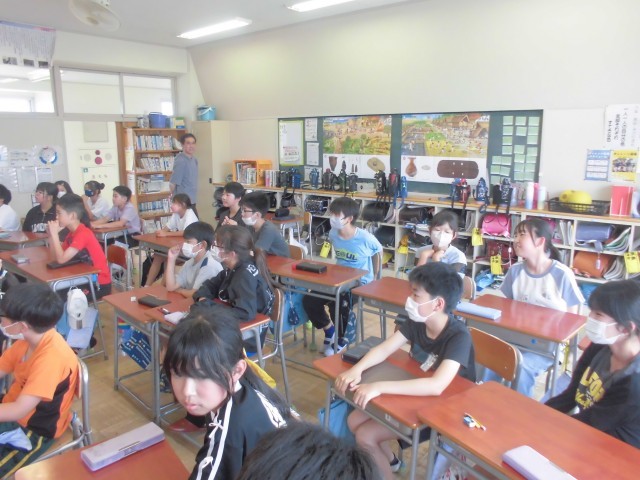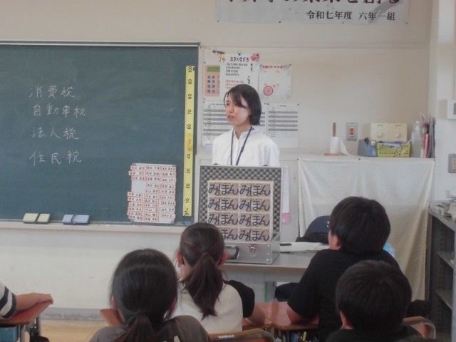 6月9日(月)6年生 租税教室 公開日 2025/06/09 更新日 2025/06/09 できごと 日野小学校と合同で「租税教室」です。日野小からは6人の6年生が一緒に勉強しました。市役所から担当の職員の方が、税金の大切さについて熱心に話をしてくださいました。 +2