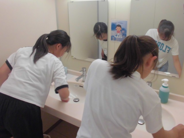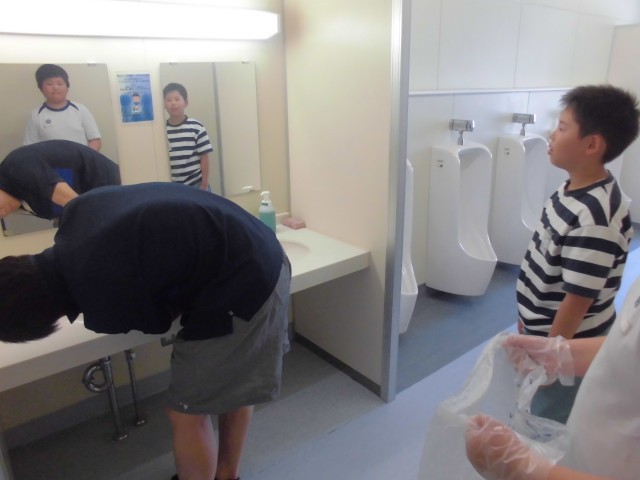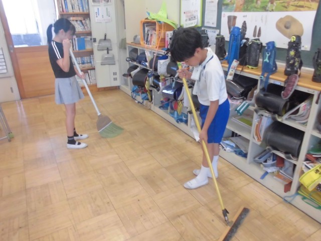 さすが6年生、先生の指示がなくてもテキパキと自分の分担の掃除を頑張っていました。担任の先生も一緒に取り組んでいます。