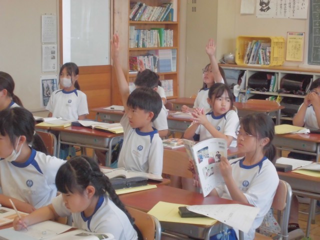 先生の発問に次々と子どもたちが積極的に意見を発表していきます。