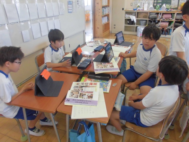 テーマごとに班を作り、うまく交流しながら調べ学習を進めていました。