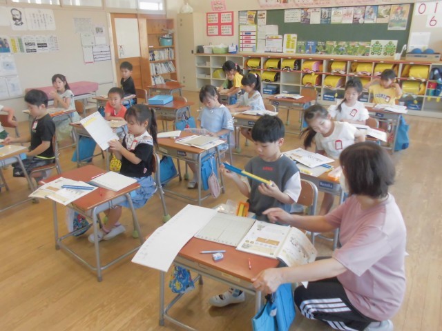 引き算の原理を理解するために、具体物のブロックをそれぞれ操作しています。