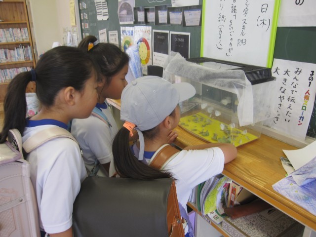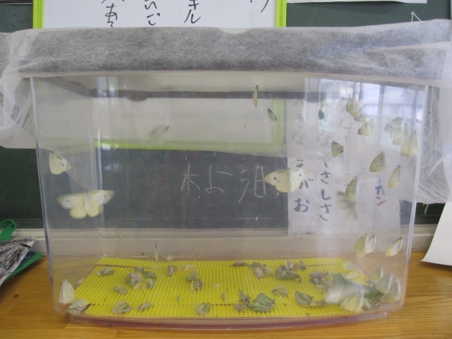 6月20日(金)3年生 理科 公開日 2025/06/20 更新日 2025/06/20 できごと モンシロチョウが30頭近く羽化したので、放してあげました。いっせいに飛び立ったたくさんのチョウを見て、子ども達は歓声を上げていました。 +4