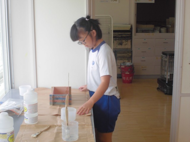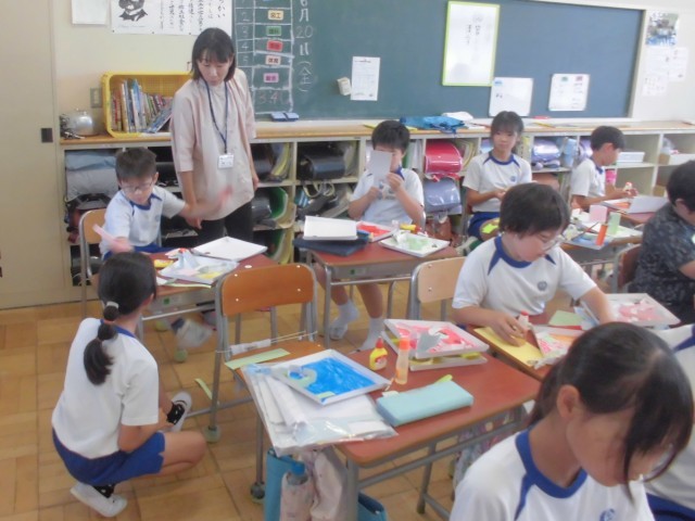 交流学級でみんなと楽しく、体育や図工に取り組むようすです。