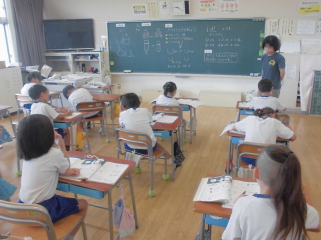 かさ(体積)の学習に入りました。まとめをしっかりノートに書いている場面です。
