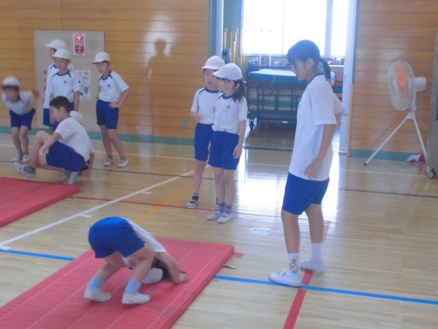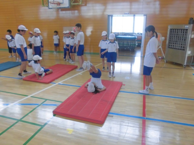 6月20日(金)チャレンジ道場 公開日 2025/06/20 更新日 2025/06/20 できごと 平井小の体力向上のため、体育給食委員会の月イチ企画「チャレンジ道場」です。今回はマット運動です。休み時間に高学年の体育給食委員が下級生にポイントを教えます。 +6