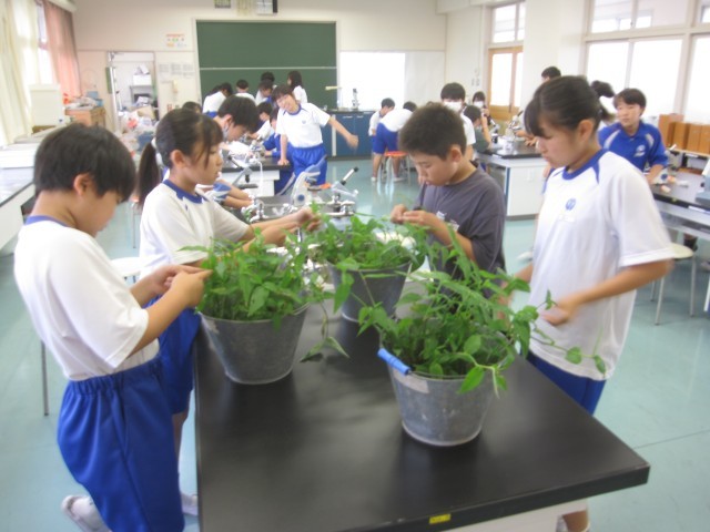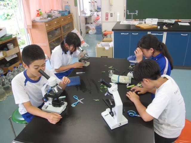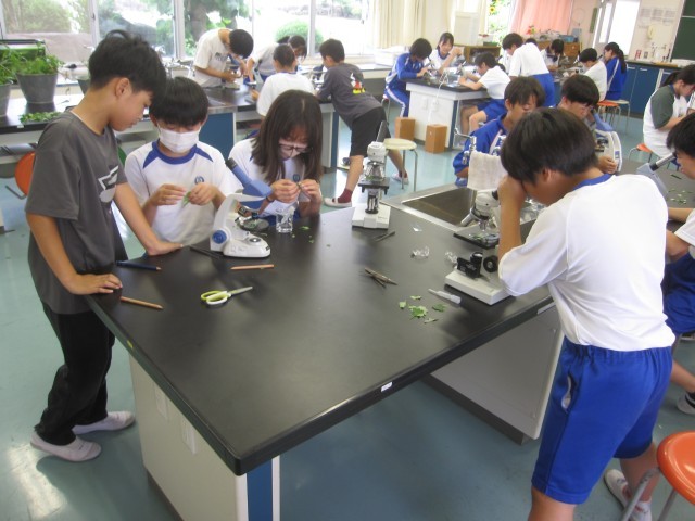 6月24日(火)6年生 理科 公開日 2025/06/24 更新日 2025/06/24 できごと ツユクサの葉の裏の表皮を顕微鏡で観察しました。 葉の表面には、水蒸気が出て行く小さな穴(気孔)がたくさんあることがわかりました。 +6