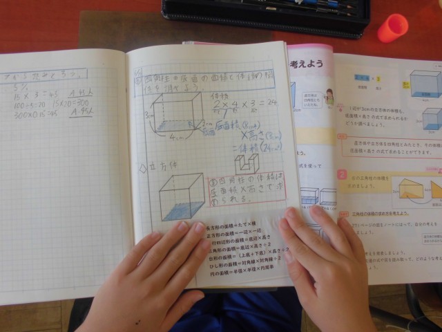 これまでの公式が一覧になっているプリントをノートに貼りました。