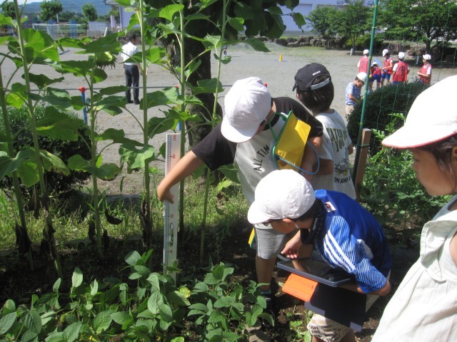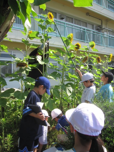 6月27日(金)3年生 理科 公開日 2025/06/27 更新日 2025/06/27 できごと 育てている植物の観察をしました。ヒマワリは、前回の観察のときの高さの2倍の2m30cmになっていました。花が咲き、実をつけているものもありました。 +7