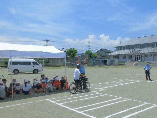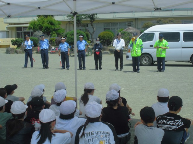 6月30日(月)交通安全教室 公開日 2025/06/30 更新日 2025/06/30 できごと 藤岡警察署、市地域安全課、緑埜駐在所、交通指導員さんなど、たくさんの方々のご協力で、4年生~6年生を対象に、交通安全教室を実施しました。たいへん暑い日になってしまい、子どもたちはテントの日陰で説明を聞きました。 +6