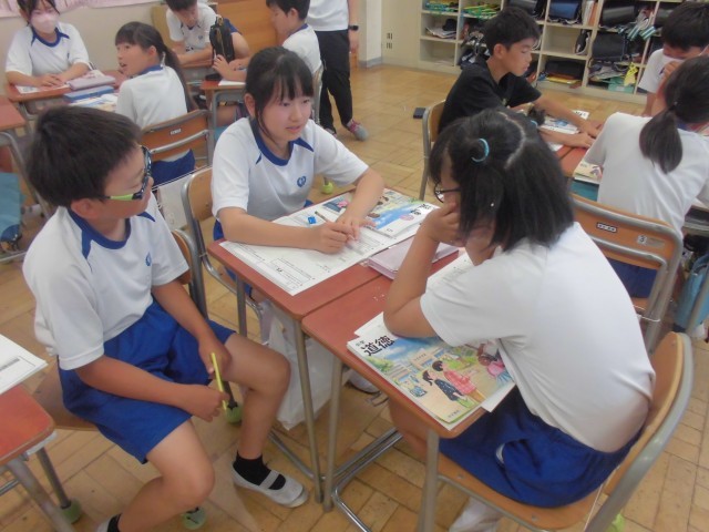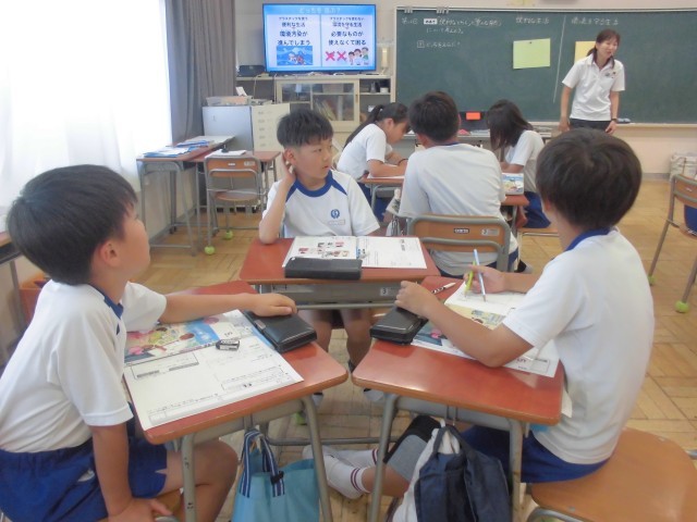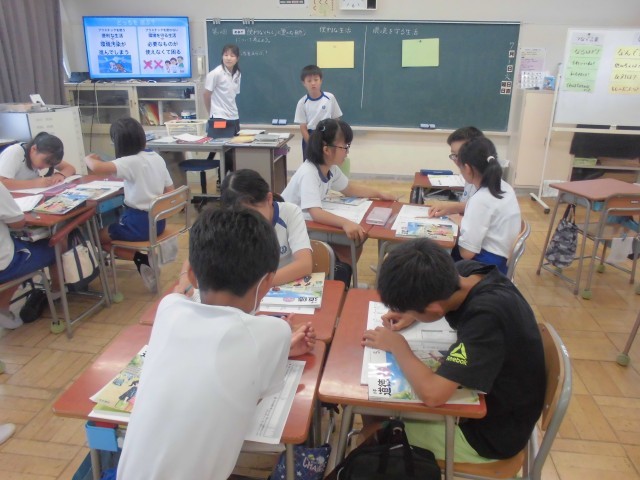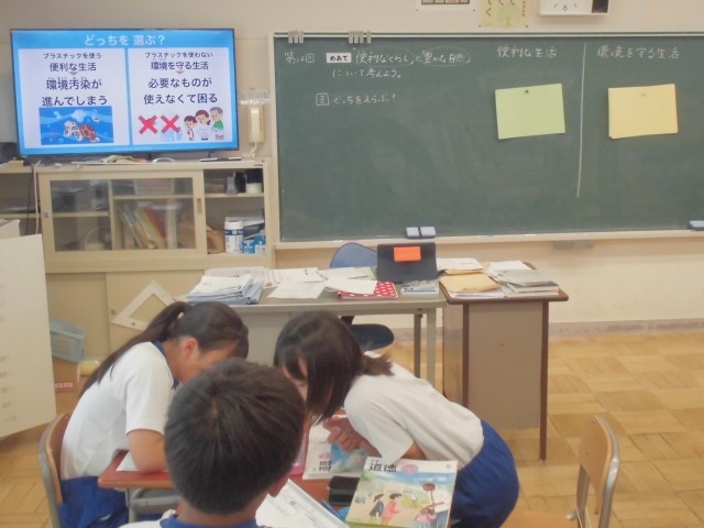 「便利な生活」と「環境を守る生活」、どちらかを班ごとに選択して、じっくりと話し合います。