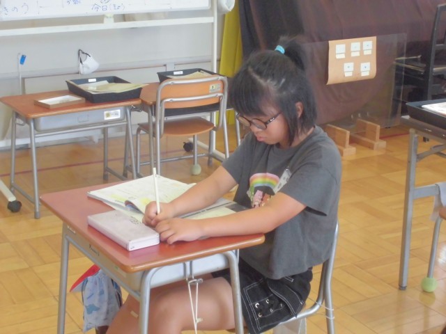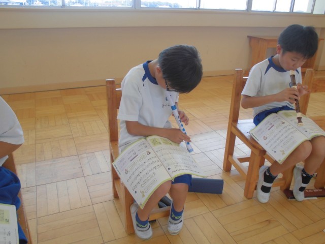 教室で一緒に算数に取り組むようすと、交流学級でリコーダーや歌を頑張るようすです。