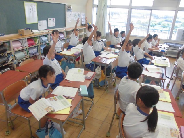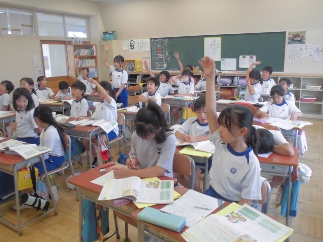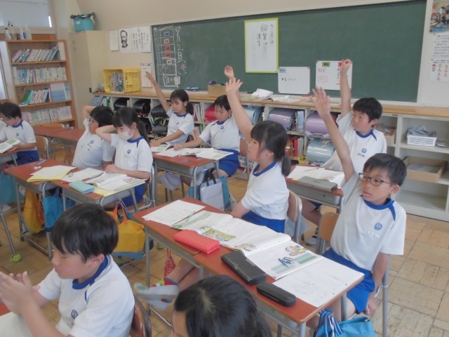 先生の発問に次から次と手が挙がり、子どもたちからの意見の発表が止まりません。