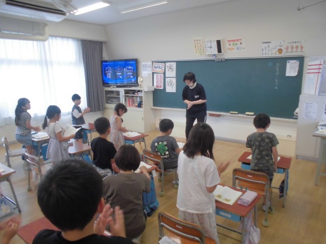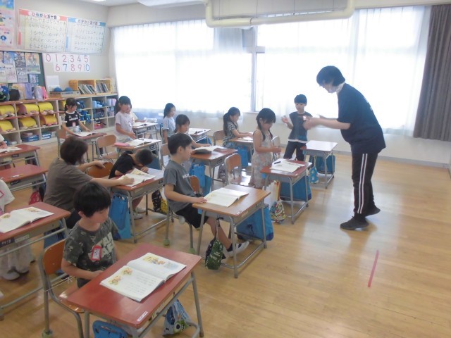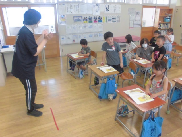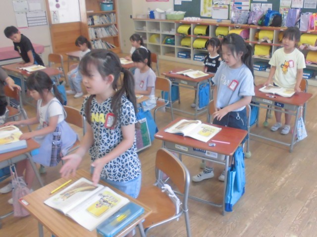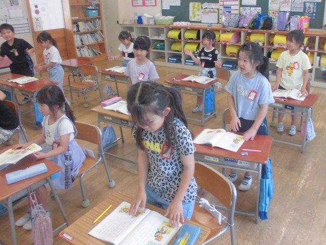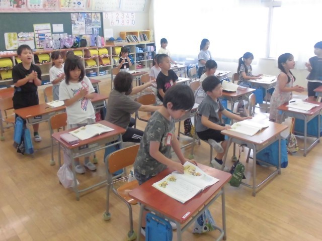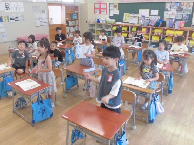 7月2日(水)1年生 国語 公開日 2025/07/02 更新日 2025/07/02 できごと 先生の軽快な手拍子のリズムに合わせて、自分の順番が来たら立って、「おむすびころりん」をリズムよく読み上げます。 +4