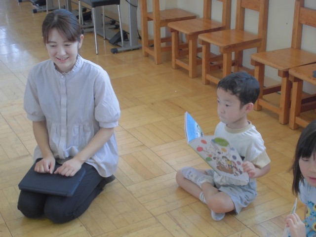 交流学級で、班ごとに歌の練習をしている場面と、ポスターの下書きを考えている場面です。