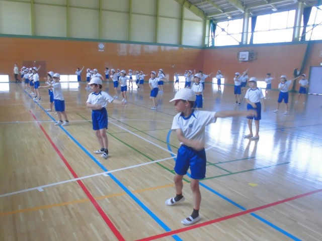 7月9日(水)3、4年生 体育 公開日 2025/07/09 更新日 2025/07/09 できごと 3、4年生合同で、運動会での表現ダンスを練習します。暑い体育館ですが、みんなとても楽しそうに踊ります。 +7