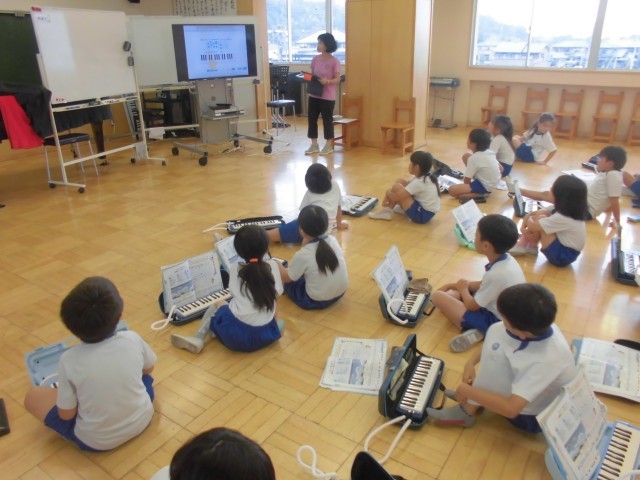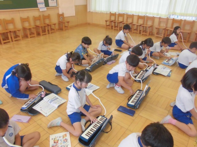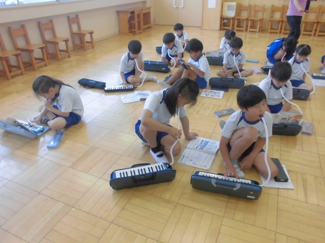 7月10日(木)2年生 音楽 公開日 2025/07/10 更新日 2025/07/10 できごと 2クラス合同です。鍵盤ハーモニカの音がみんなそろってきれいでした。いろいろな指つかいを覚えていきます。 +6