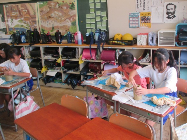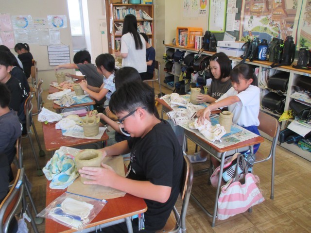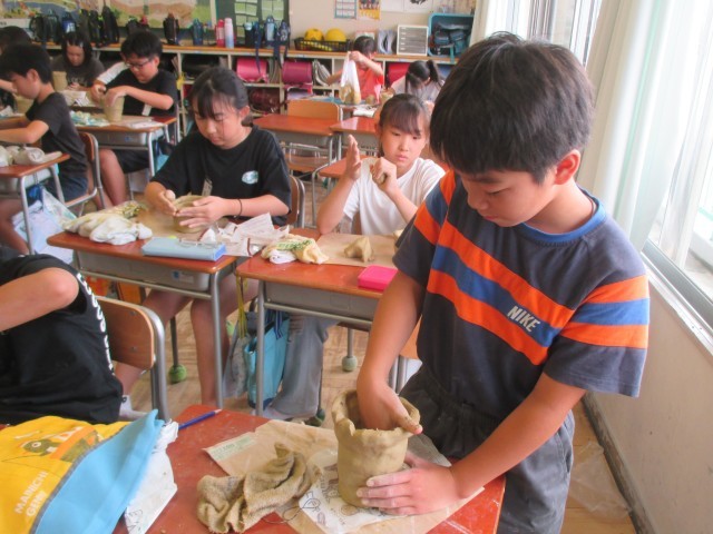 7月11日(金)6年生 日野小合同 その1 公開日 2025/07/11 更新日 2025/07/11 できごと 日野小からも6年生が6名一緒に参加し、合同で「土器作り」を体験しました。歴史で習った土器を自ら制作でき、大いに盛り上がりました。 +7