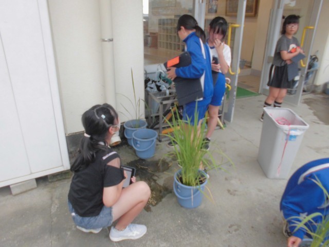 7月11日(金)5年生 総合 公開日 2025/07/11 更新日 2025/07/11 できごと バケツ稲が順調に生育しているようです。先日の雨で水が多くなりすぎたので、週末に向けて調整しておきます。 +4