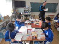 説明文に入りました。拡大印刷した文章をみんなで見ながら、文の構成について分析して...