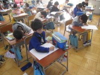 黒板をフル活用して学習内容を終え、振り返りのワークやプリントに挑戦中です。