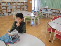 先日ボランティアさんがクリスマスムードに飾り付けてくれた図書室で、大好きな本を読...