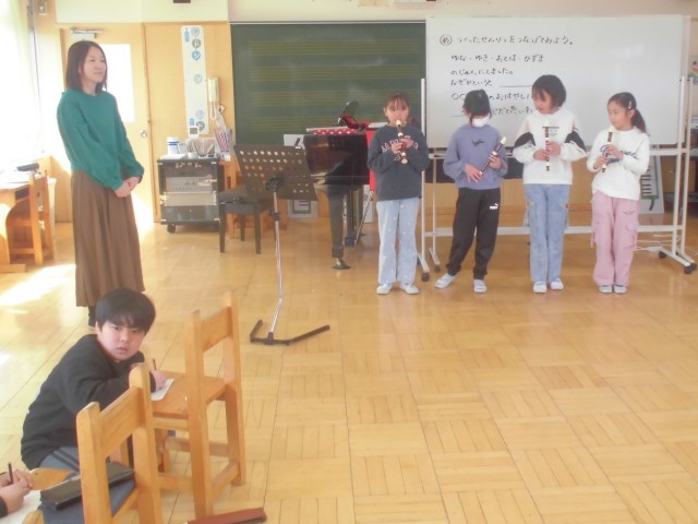 グループごとに自分たちで作曲した曲をリコーダーで演奏する発表会でした。聴く側は、...