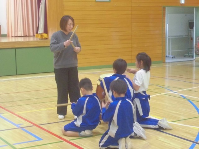 3、4年生を対象に、音楽の時間に和太鼓を体験しました。ボランティアの方に分かりや...