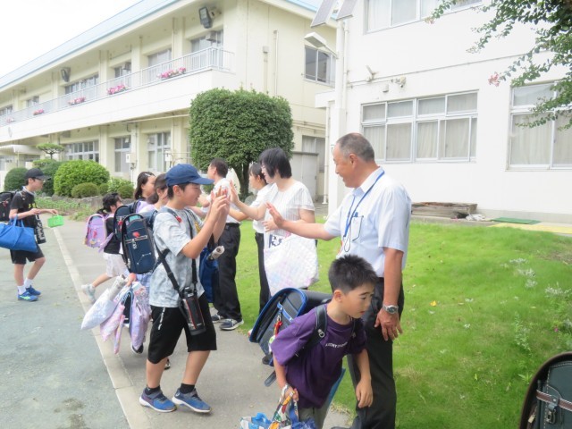 今日の下校は、1学期最後のスマイルハイタッチあいさつ運動でした。今日は職員がみんな並んで子どもたちとあいさつを交わしながら「さようなら」のあいさつを交わしました。2学期また元気に登校してくることを楽しみにしています。どうぞ充実した夏休みを過ごしてください。