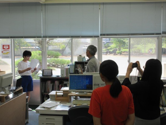 みかぼ学級の子どもたちが夏休みの思い出を発表しに職員室を訪れました。スライドをもとに、それぞれフットサルのことや新幹線でコンサートに行ったことなどを上手に話してくれました。自分の考えを表現できるよう、2学期も折に触れ発表しにきてくれることと思います。