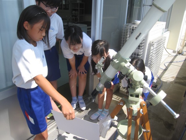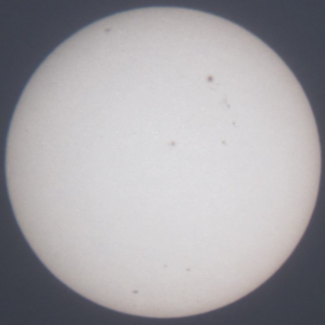 太陽の黒点を観察しました。今は太陽の活動が活発で、たくさんの黒点が見られました。