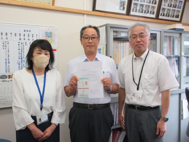 本日日本教育公務員弘済会群馬支部の方がお見えになり、学校で使える図書カード30,000円分の助成をいただきました。いただいた助成は子どもたちの図書費用として使わせていただきます。弘済会の皆様には、子どもたちのためにと日頃より様々な援助をいただいています。ありがとうございます。