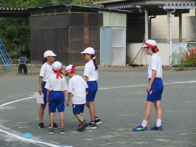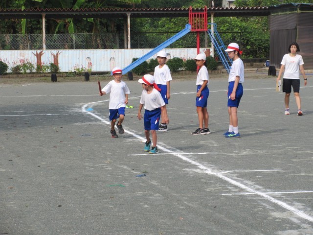 今日の業前は運動会で行う全員リレーの練習をしました。団ごとに集まって、6年生が下の学年の子にバトンパスの受け渡しを教えていました。その様子を見ていると、日野小のよき伝統でもある「下の子の面倒をみる」が、息づいていることを感じました。この後、休み時間などを使って練習が始まることと思います。熱中症に気を付けながら練習を進めます。