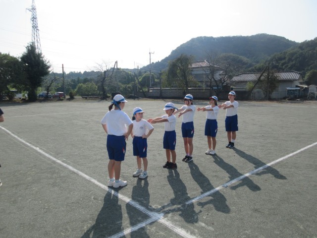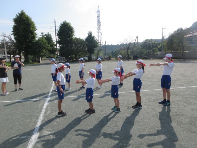 連休明け最初の業前は運動会の全員リレーの練習です。最初にバトンパスの練習をしてから、入場~競技~退場までの一通りやってみました。時間前に集まっているなどやる気を感じさせます。熱中症に気を付けながら練習を進めます。