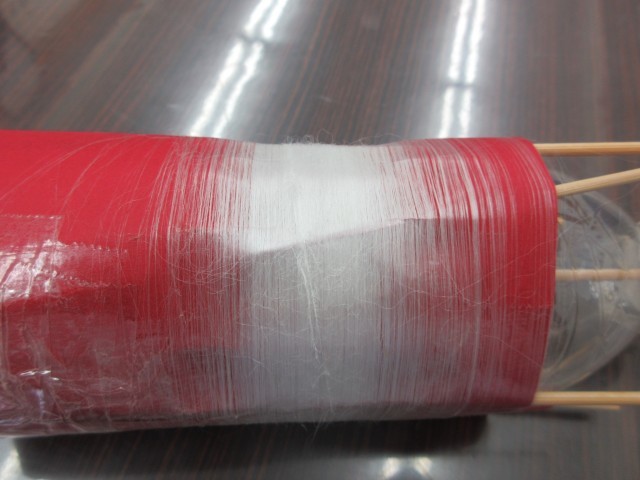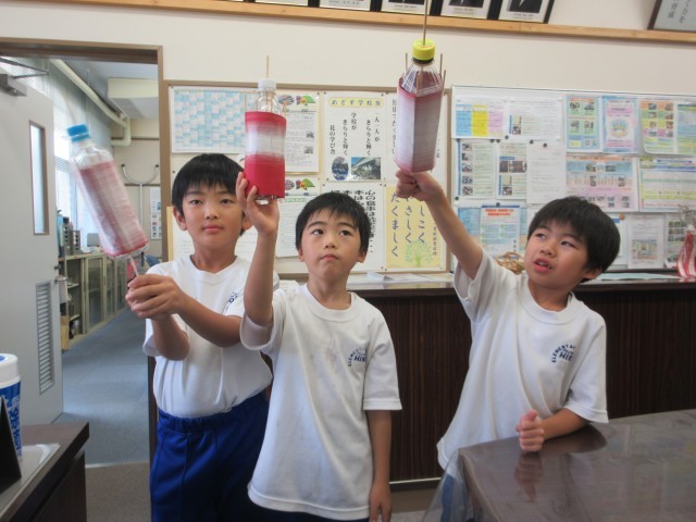 3年生が総合的な学習の時間で育てていた蚕の繭から、糸を取り出して見せに来てくれました。ペットボトルでつくった糸繰りで真っ白な糸を取り出すことができてとてもうれしそう。校長室で記念撮影しました。