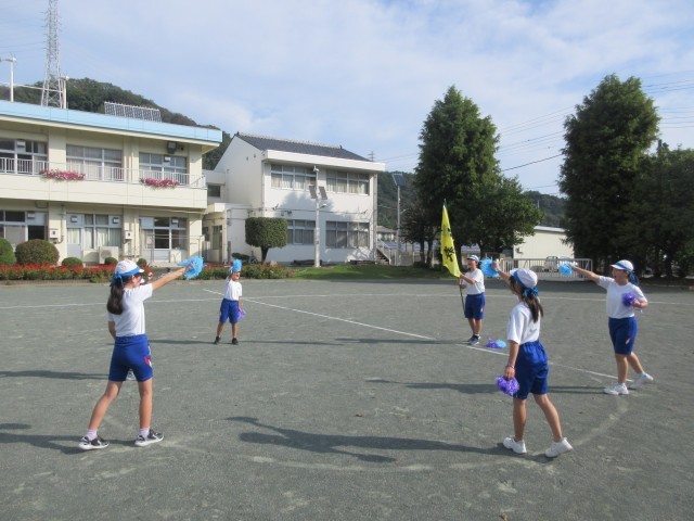 今日の業前は、運動会の応援合戦の練習です。各団とも休み時間を使って自主的に練習を重ね。小道具も用意していました。少ない人数ですがみんなが声を張って一生懸命応援していました。子どもたちのがんばっている様子がよくわかります。今日も暑い日が続きます。熱中症に気を付けながら活動を進めていきます。