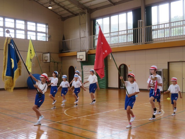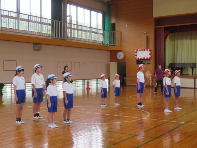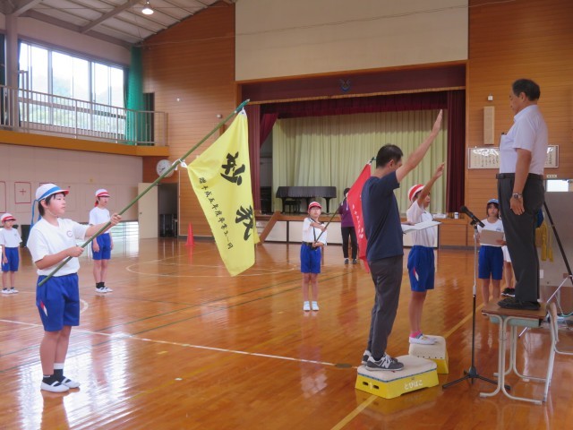 今朝は雨が降っていたので、体育館で運動会の練習をしました。業前は、入場行進から開会式、ラジオ体操までの流れを確認しました。練習を重ねるごとに、自分たちで考えて行動できるようになっています。校長先生から「行進がとてもすばらしかった」と伝えられ、子供たちはとてもうれしそうでした。練習できる日もあと4日。みんなで心を一つに頑張りましょう!