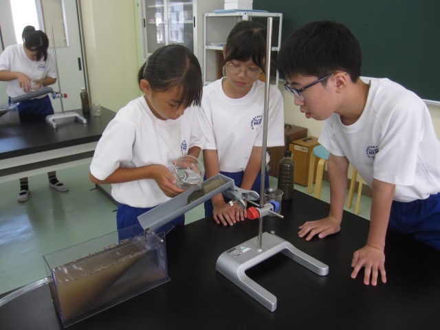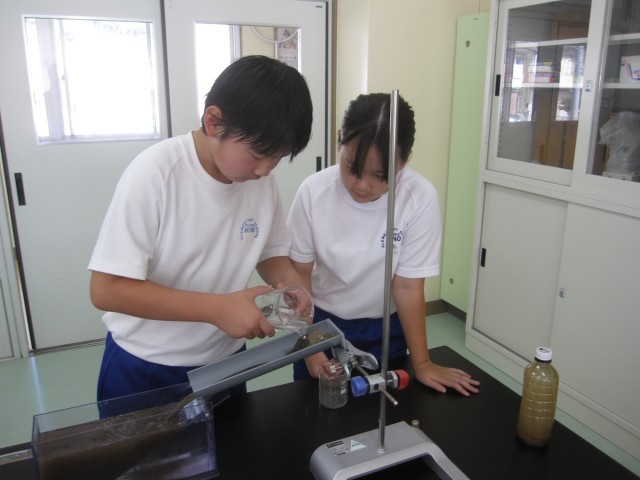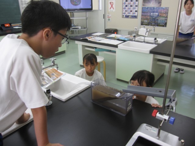 9/25 6年生 理科 公開日 2025/09/25 更新日 2025/09/25 できごと 土を水の中に流しこんで、層ができるか調べました。 水のはたらきでできた地層は、れき、砂、どろなどの堆積が何度かくり返されてできることがわかりました。 +7