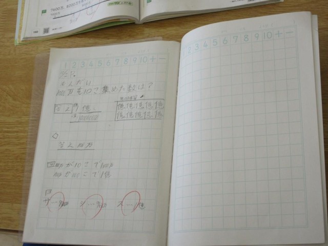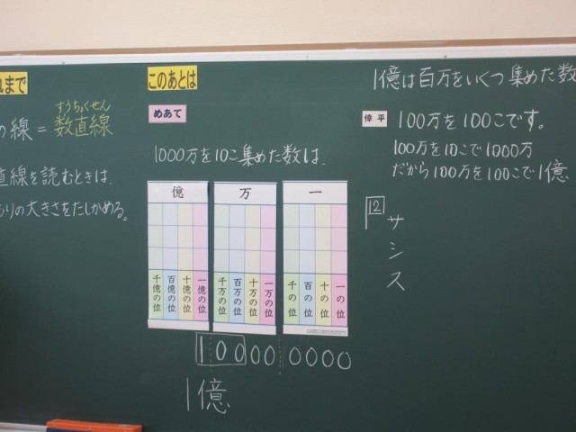 3年生は算数で大きな数の学習を進めています。これまで学習した数直線で大きさを見るのに、「1目盛りの大きさ」が大切であることを確認した後、練習問題に取り組みました。みんなよくできていました。