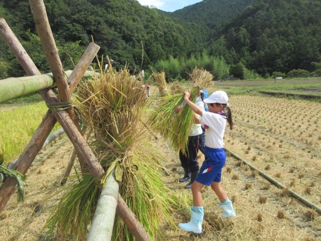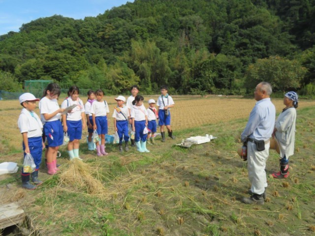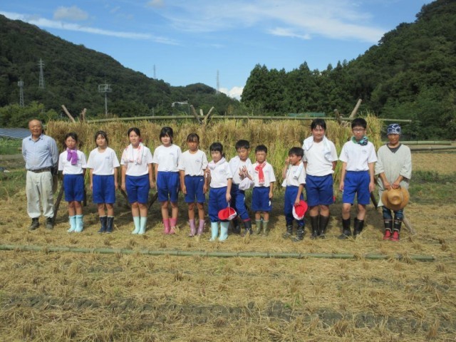10/2 5校時全校稲刈り体験