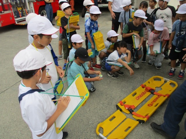 3年生は、平井小学校の3年生と一緒に藤岡消防署で社会科見学を行いました。ふだんなかなか入れない執務室の様子や、救急の仕事、消防の仕事についてお話を聞きました。また救急車や消防車の工夫についても知ることができました。特別に消防服を着せてもらうこともできました。藤岡消防署の皆様、平井小学校の3年生のみなさん、ありがとうございました。