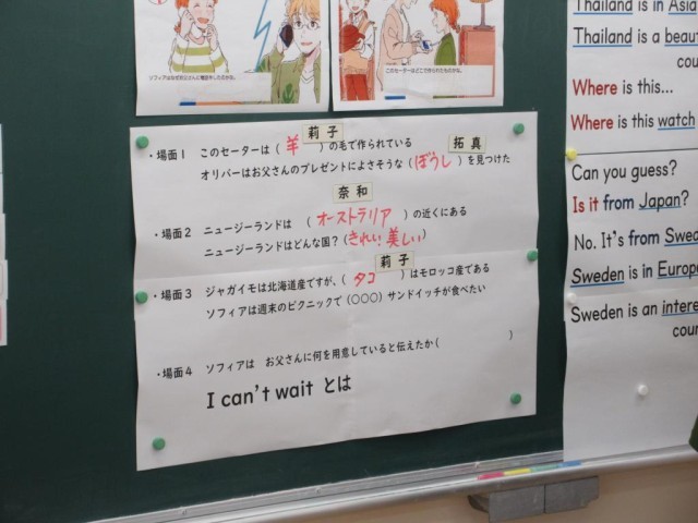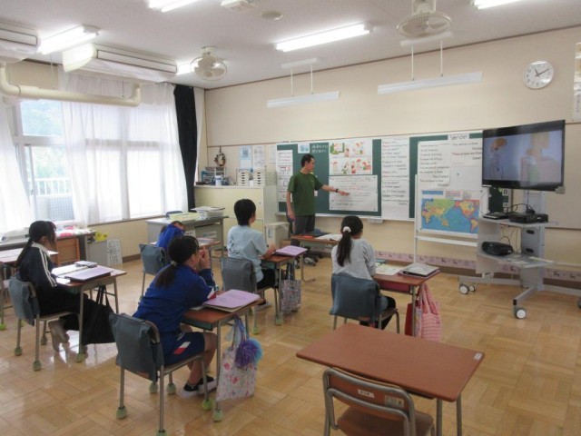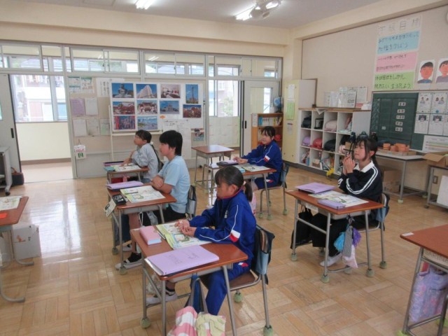 6年生は英語の聞き取りの学習をしています。リスニングで、特産物のことやおみやげのこと等を聞き取り、日本語に訳して答えていきます。きのうの陸上記録会の疲れも見せず、落ち着いて学習に取り組んでいます。