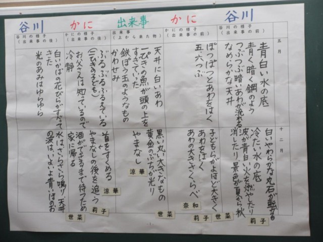 6年生は国語で宮沢賢治の「やまなし」の読み取りの学習をしています。今日は、5月と12月の情景で印象に残っているところを出し合いながら、最終的には「賢治はなぜ『やまなし』という題名をつけたのか」について考えていました。そこで先生から、解説文「イーハトーブの夢」ももう一度確認してみてください。」との助言があり、賢治のイーハトーブという理想郷と、やまなしとを関連させながらそれぞれが考えを伝えていました。