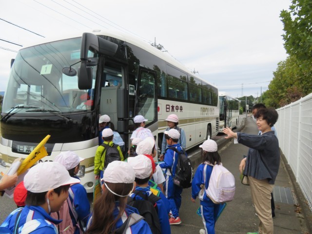 2年生は、平井小の1・2年生と一緒にバス旅行です。まず、教室で朝の会をし、その後、校庭に整列して校長先生からのお話を聞きました。「行ってきます!」の声も大きく、子供たちのワクワクした気持ちが伝わってきました。バスに乗り込む際には、日野小の先生も駆けつけてくれて、「楽しんできてね!」と声をかけてもらいました。バスの中では、同じ班のお友達と楽しく過ごすことができました。