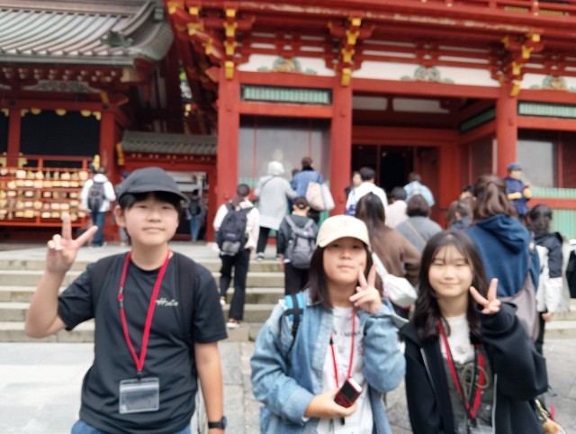 2班が二つ目の目的地である鶴岡八幡宮に到着しました。天気にも恵まれ、鎌倉の街を気持ちよく歩くことができています。順調です!