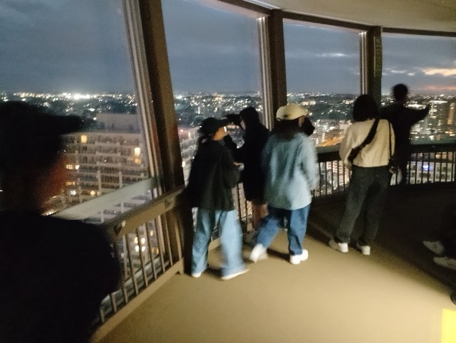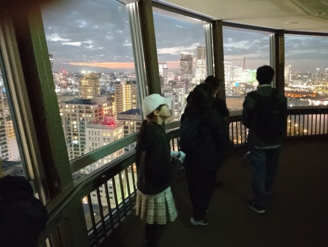 横浜マリンタワーで夜景に歓声があがりました。
