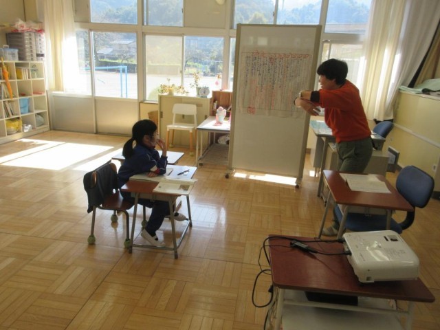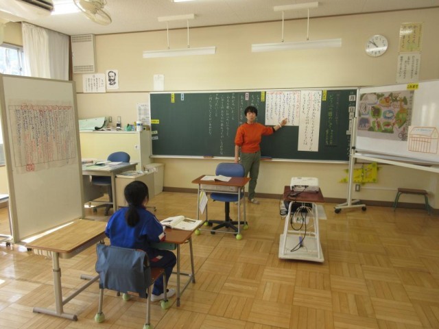 2年生は国語「どうぶつのおいしゃさん」のまとめをしています。今日はこれまでの学習を振り返って、さらに疑問に思ったことや不思議に思ったことを書き出していました。「どうぶつはどうやって注射しているのか」「どこにちゅうしゃしているのか」などの考えを出していて、先生からは「本や図鑑などで調べて先生に教えてください。」と呼びかけられていました。この単元の学習では、児童の問いや疑問をもとにめあてをつくって学習が進めら、2年生は自分で意欲的に教科書を読んだり調べたりする活動ができていました。