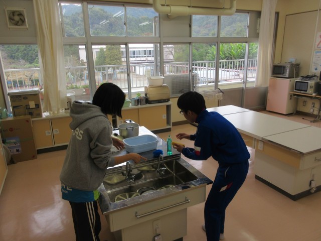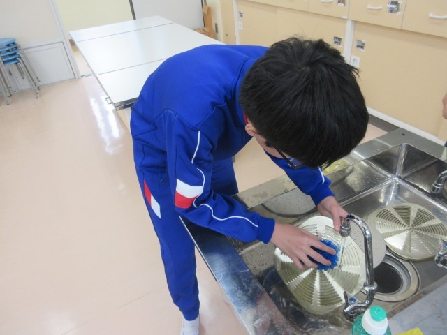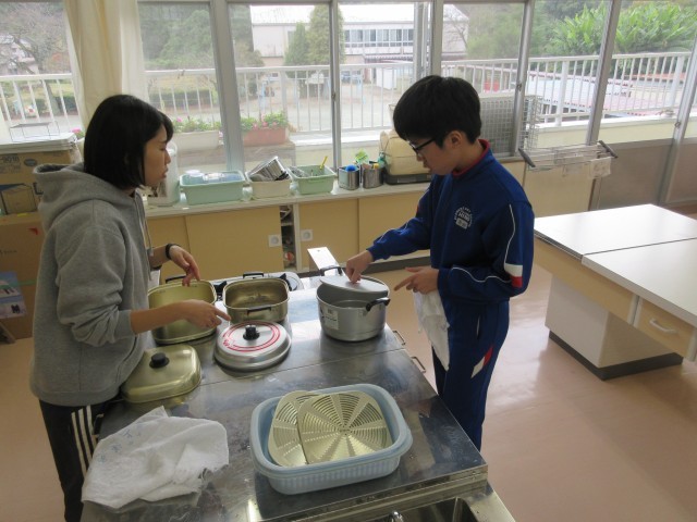 みかぼ学級では、6年生が来月行われる平井小学校との交流学習に向けて、家庭科室の調理器具の点検をしています。洗い物のやり方を先生といっしょにやりながら覚え、きれいにしていました。交流学習、とても楽しみです。