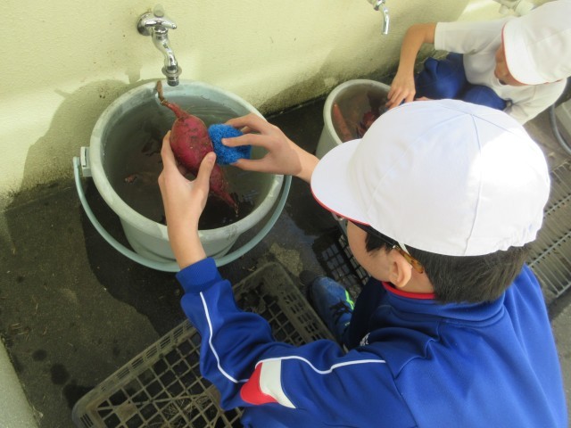 みかぼ学級の子どもたちが、来週の学校公開での焼き芋大会に使うサツマイモを洗ってくれていました。みんなのために丁寧に洗ってくれています。全員が協力しながら楽しみにしている行事の準備が進んでいます。みかぼ学級のみなさん、ありがとうございました。